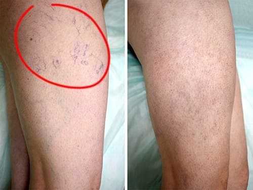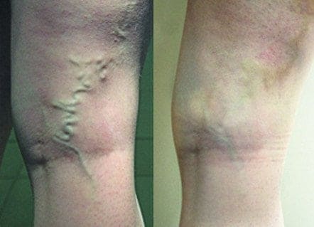 Las venas se han recuperado por completo. Período de tratamiento: 2 semanas.